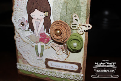 I created this card using the My Favorite Things "Just For You" Jolinne clear stamp. She is so adorable and pretty. I loved doing the paper piecing technique with this stamp, so much FUN and I love how it turned out. I also created rolled flowers using cork sheets and felt. So much fun to do and I love the way the cork sheet rolled flower turned out! :-)