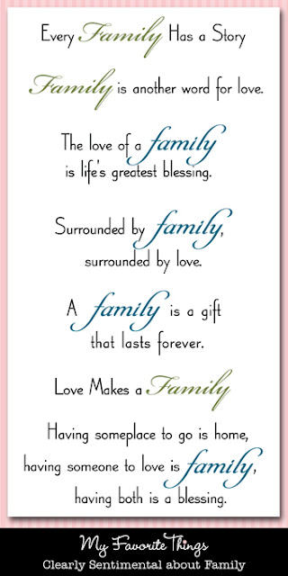 Inside the card, I used the new First Class Friend Die-namics frame and cut out the Woodgrain Fence using designer paper. The sentiment is stamped using the Clearly Sentimental about Family stamp set, which I love because the word "FAMILY" (in 2 different styles) are separate stamps, so you can easily stamp the word Family in a different color and have it stand out, like I did below...